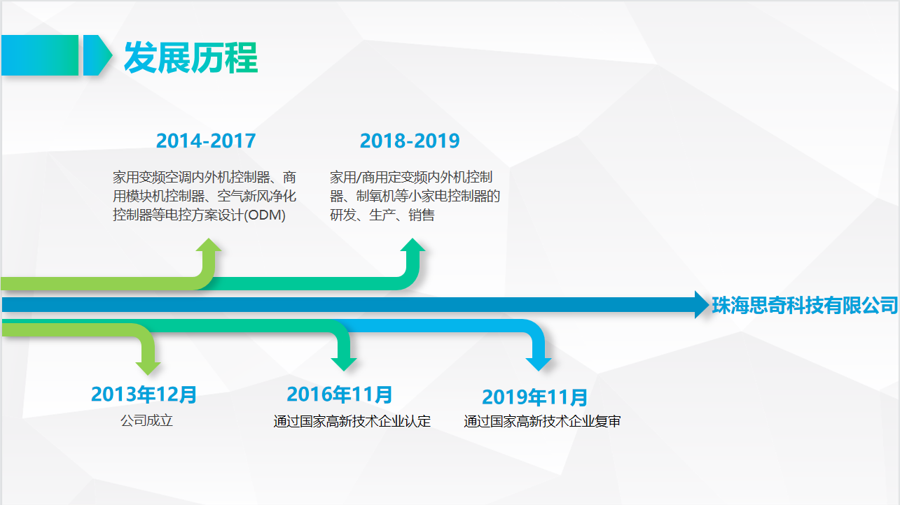 珠海思奇科技有限公司成立于2013年,公司設立于廣東省珠海市高新區,是一家以智能控制為核心技術,從事智能控制系統研發、生產、銷售與咨詢服務的高新技術企業,特別在直流電機驅動技術上有著豐富的經驗,屬于行業領先水平,能滿足家電及工控行領域直流壓縮機、風扇電機等各類控制需求,為多家知名廠商提供產品配套。另外在AI控制、工業視覺檢測領域,思奇也有著多年的技術、實踐積累。作為國家級高新技術企業,始終如一地奉行“創新、品質、服務”的原則承諾,致力于在研發、供應鏈、銷售、服務、售后等方面的技術沉淀、資源積累以及貫徹負責的態度,不斷的技術與產品創新,逐步發展成為行業內極具潛力的科技公司。作為高科技企業,對研發和創新的投入亦是重點,同時,公司十分重視核心技術的保護,截止202309月01日,公司已擁有實用專利21項,發明專利7項的技術成果。